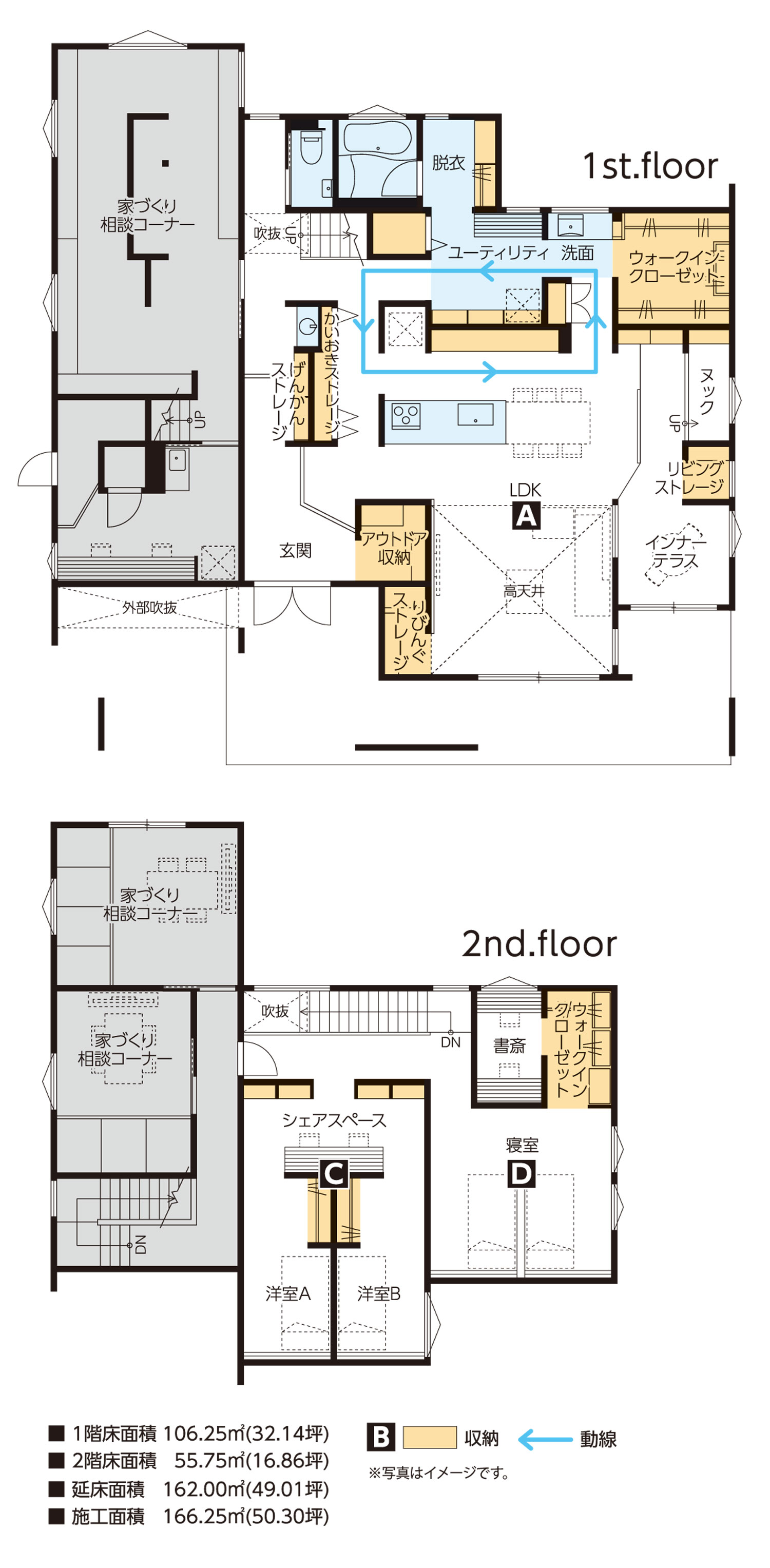 B 家族の動きに寄り添う動線+収納で、暮らしも遊びも、もっとアクティブに。
