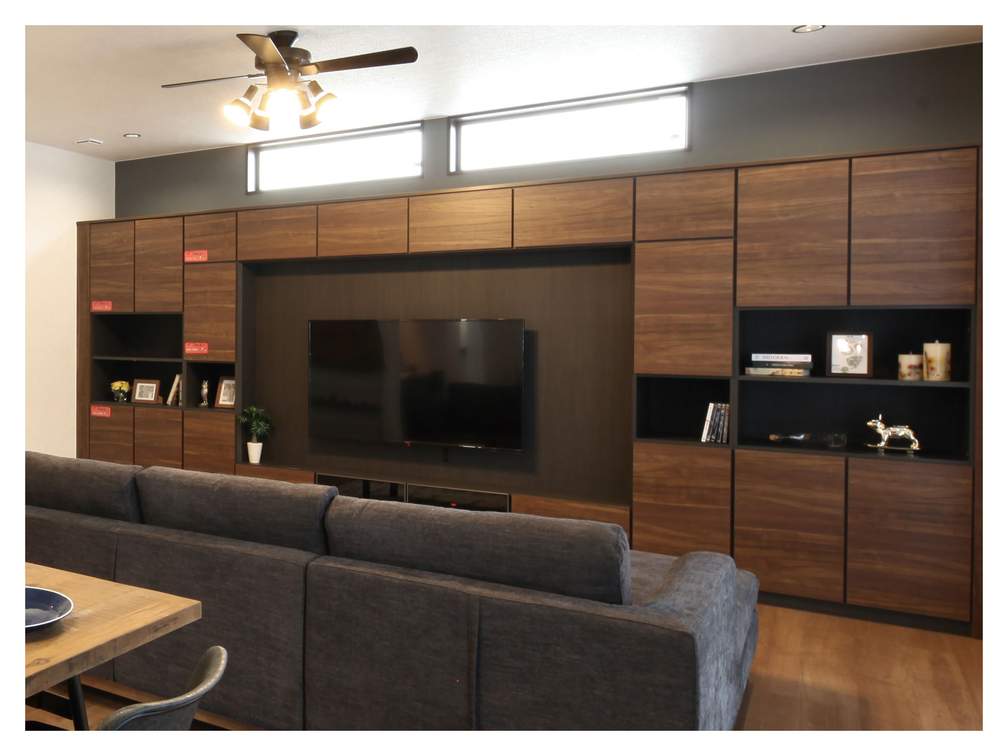 お部屋の雰囲気をつくり出す、大容量の壁面収納。賢く空間を使って見栄えばっちりに!