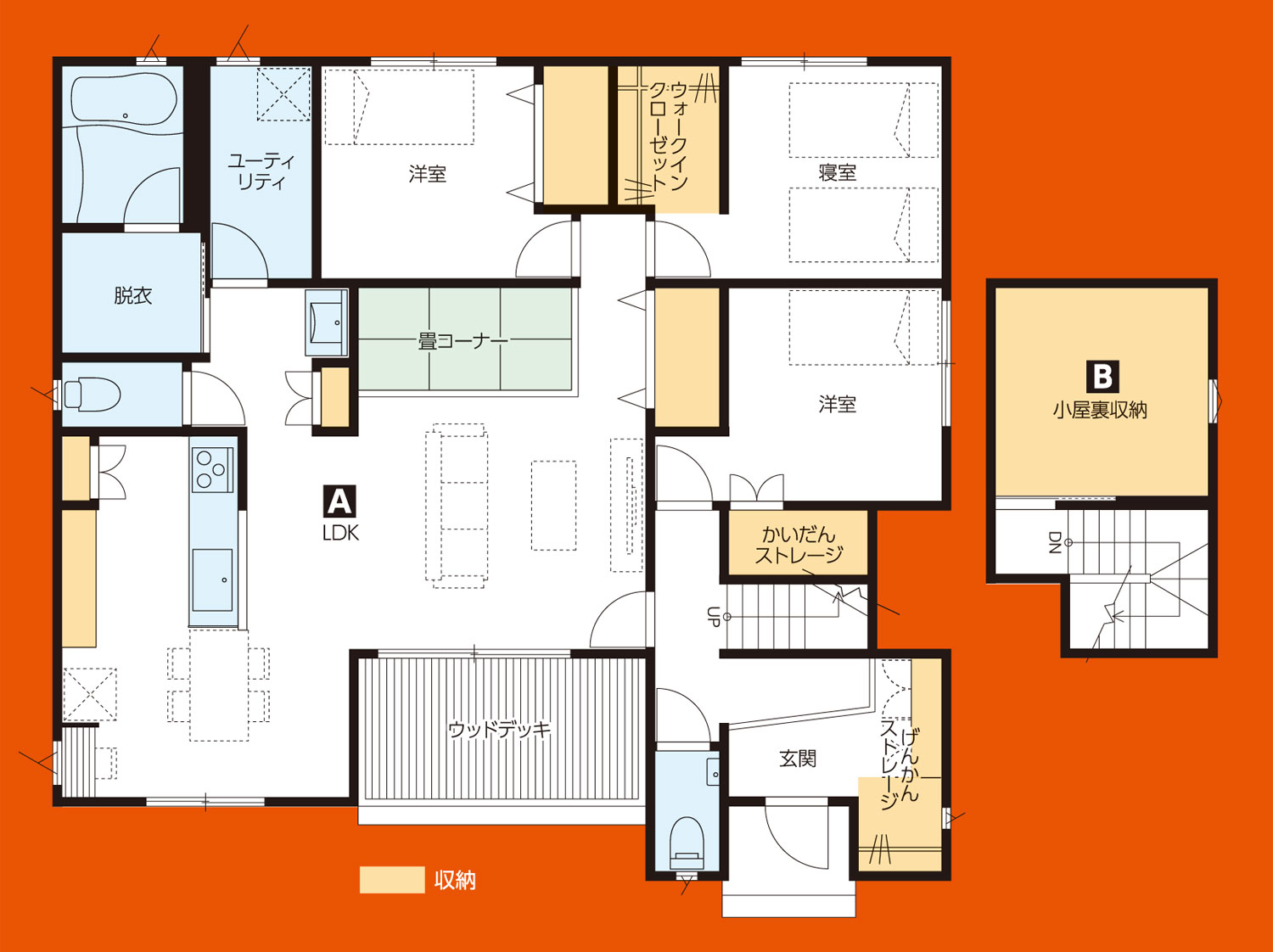 1階は「使う場所」に最適収納を。無駄のない動線と、大収納が、平屋の暮らしをどこまでも広くします。