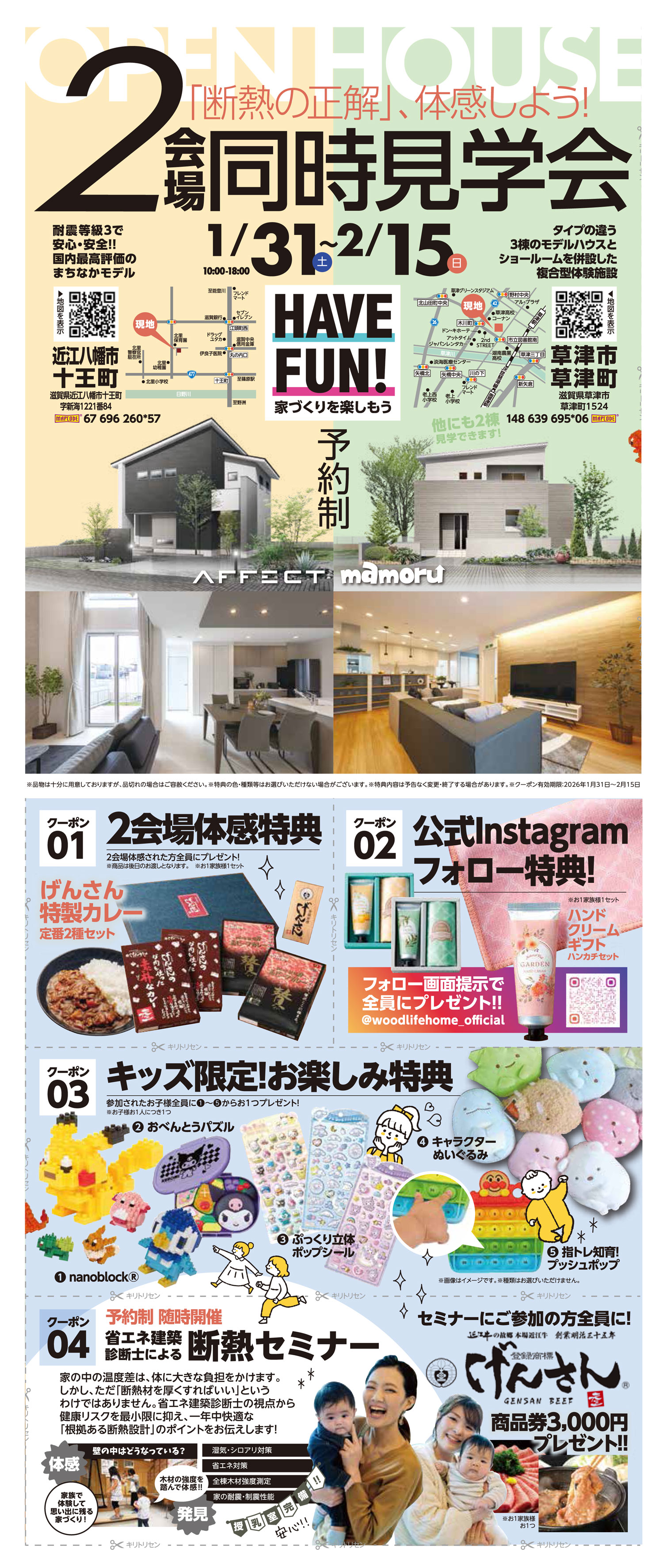 2会場同時見学会 予約制|近江八幡市・草津市