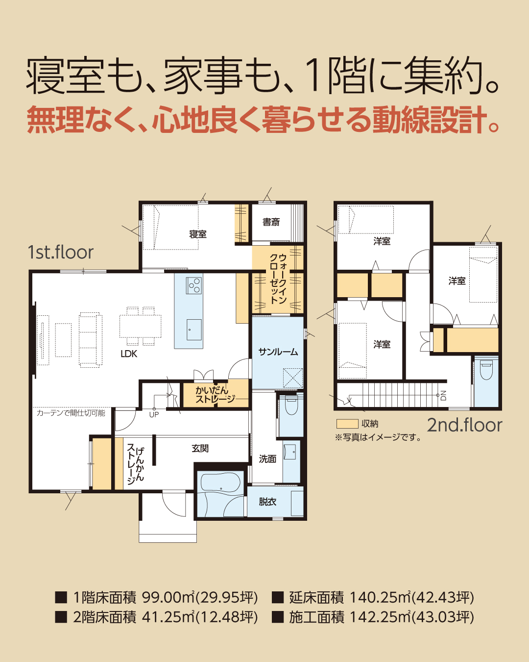寝室も、家事も、1階に集約。