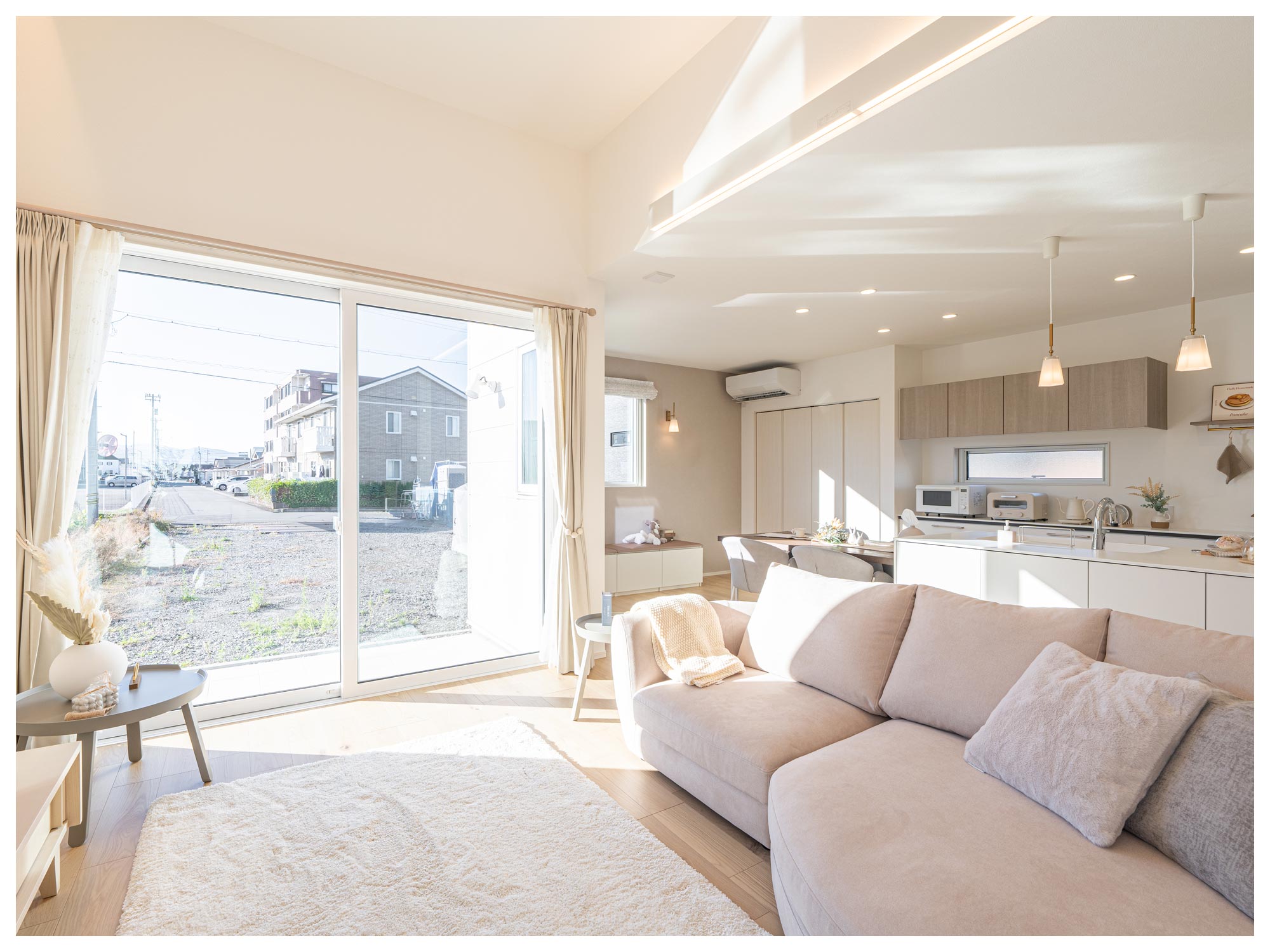 南からの光が広がるLDK+アウトドアリビング。
