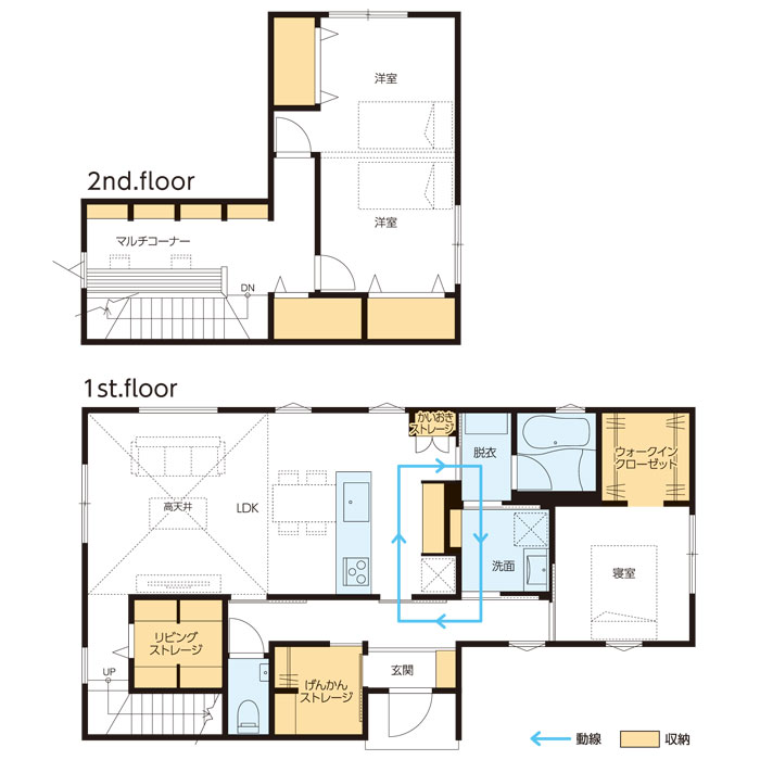 ワンフロアで安心できる生活+2階建てで空間を確保。